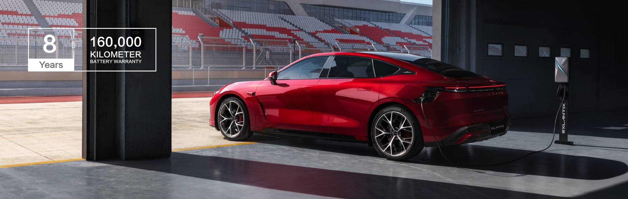 A high-performance racing-grade braking system with six-piston calipers is standard on the EXEED ES, guaranteeing safe and quick deceleration. Even in extreme situations, the EXEED ES maintains complete control thanks to its compact maximum braking distance of 33.1 meters from 100 km/h. No matter the situation—in heavy traffic or an emergency—the braking system reacts precisely and powerfully, giving you extra protection. This robust system ensures safety and confidence, offering exceptional stopping power when needed.